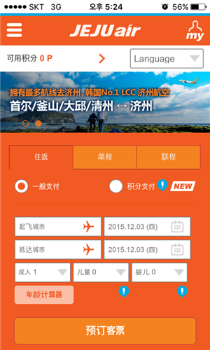 通过一个济州航空app享受搜索机票,查询订票信息,网上登记等所需要的服务!