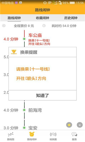 (4)保存并管理收藏闹钟线路。