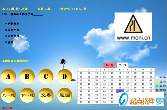 3、驾驶技能包含基础教学以及一般道路、恶劣条件、山区道路、高速公路驾驶。夜间驾驶包含:原地灯光、灯光考试、夜间驾驶。紧急情况训练增加酒后驾驶模拟。新增地图,软件包含模拟考试系统,可设置打分、语音文字提示扣分项。