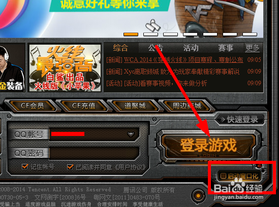 为什么我用了CF窗口化后无法恢复全屏?请检查软件下方是否勾选了窗口化,如果需要全屏,请将勾选去掉!