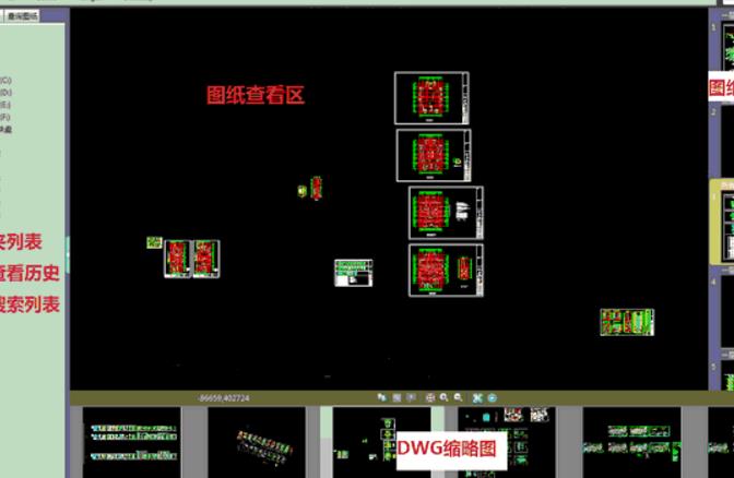 软件将用户选择的目录下所有图纸,以“缩略图”的方式呈现出来,方便用户快速浏览和查找图纸!