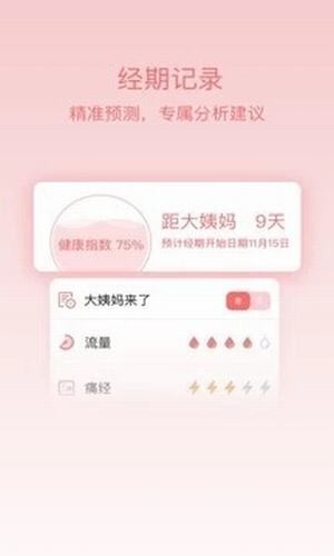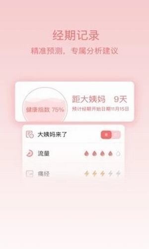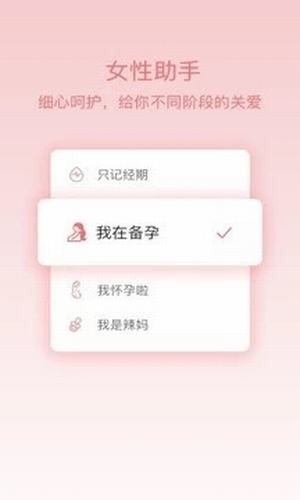 姨妈呵护助手app精准预测,科学记录每一次生理期,越用分析越准确。科学备孕,提供月经期保健、育儿、产后恢复、生活保健等各类专业全面的知识,帮你解决经期、怀孕、备孕、育儿不同阶段的困扰。科学呵护女性成长每一天。