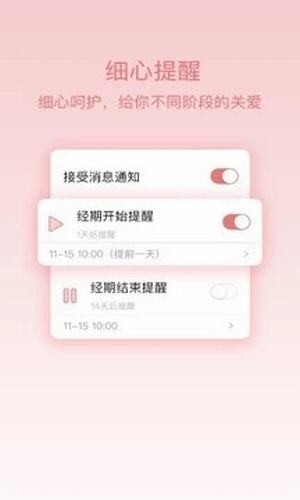 【贴心提醒】你可以自由定义提醒项目、时间、甚至内容,让你从容面对大姨妈。