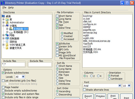 文件信息:为每个文件选择要打印的项目。如果选择Long Name并且文件没有长名称,那么短名称将出现在long name列中。因此,包括Long Name和省略Short Name将给出所有文件名,就像它们在资源管理器或我的计算机中列出的那样。注意,如果使用非常长的文件名,则可能会截断它们以适应可用空间。属性作为代码的组合列出:A(归档)、R(只读)、H(隐藏)和S(系统)。对于日期/时间,您可以选择修改的日期(这是在资源管理器和其他文件管理程序中显示的日期)、创建的日期或最后访问的日期。
