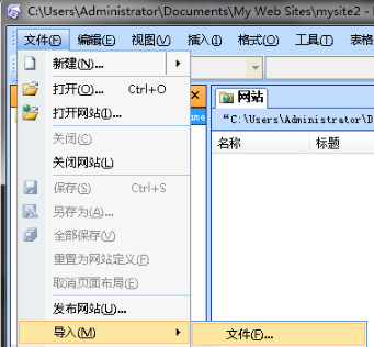 1、打开FrontPage 2003桌面快捷方式,打开软件后,点击菜单栏的“文件”选项,选择“导入”在弹出的二级菜单中点击“文件”。