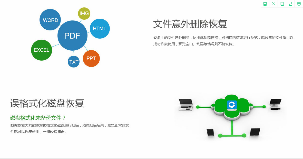 删除文件恢复大师是一款可以恢复任何被删除的文件的工具,包括文档,相片,mp3 和压缩文件,甚至文件夹。除磁盘驱动器外,该程序还支持任一类型的存储介质!它可以帮助你恢复由于病毒攻击或恶意行为造成的数据丢失。本软件不仅支持恢复被删除的文件,在新版中,还支持恢复格式化的文件,或是分区丢失、合并造成丢失的文件。