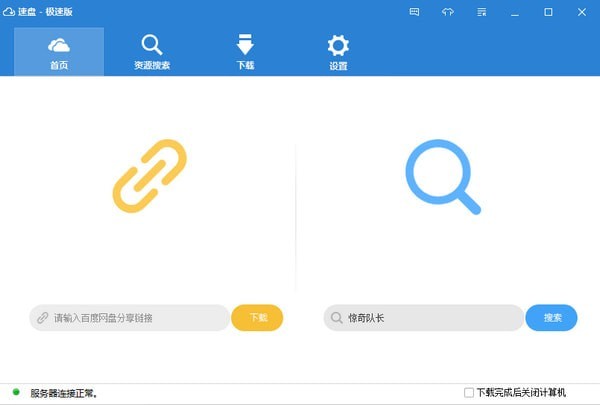 速盘极速版是一款非常好用的免登录极速度盘下载工具,此极速版可以帮助用户畅享极速下载度盘分享的资源,免受限速困扰,如果你不喜欢其他复杂的功能只想简单的进行网盘资源搜索和快速下载,使用这款速盘极速版可以满足你的所有需求,极速版速盘只包含资源搜索和资源高速下载两个功能。