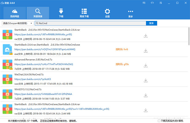 内置我爱搜盘强大的百度网盘资源搜索引擎,打开速盘即可方便、快捷的找到度盘用户公开分享的各类网盘资源,热门影音、音乐、图片、小说、软件、文档资料等。