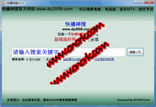 快播神搜可以几乎搜索所有的快播影视资源,包括电影,电视剧,音乐mtv,演唱会,纪录片,等一切快播资源。