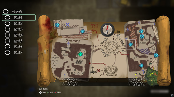 地图与地图间互有链接,给我“柳暗花明又一村”的感觉。地图上的「辉之塔」很多,用于自动存档、补充道具、传送,位置也都恰到好处;要么在BOSS房隔壁,要么接近boss房。游戏进行到「北方领域」末就有多种攻略方向,地图的攻略顺序有些定死有些没有,玩家大可在一个高难度区域刷「苍白之种」(用于人物加点和购买装备),以更好的过接下来的boss。
