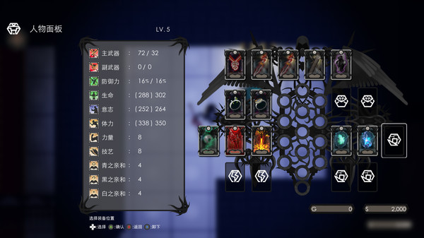 四个戒指栏,道具栏符文栏各有5个,最上面是符文、武器、护甲