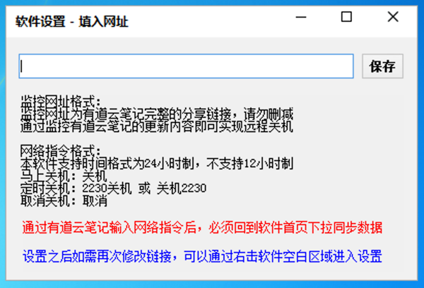 1、通过监控有道云笔记内容实现远程关机,定时关机与取消关机,也支持本地定时与取消关机2、指令格式