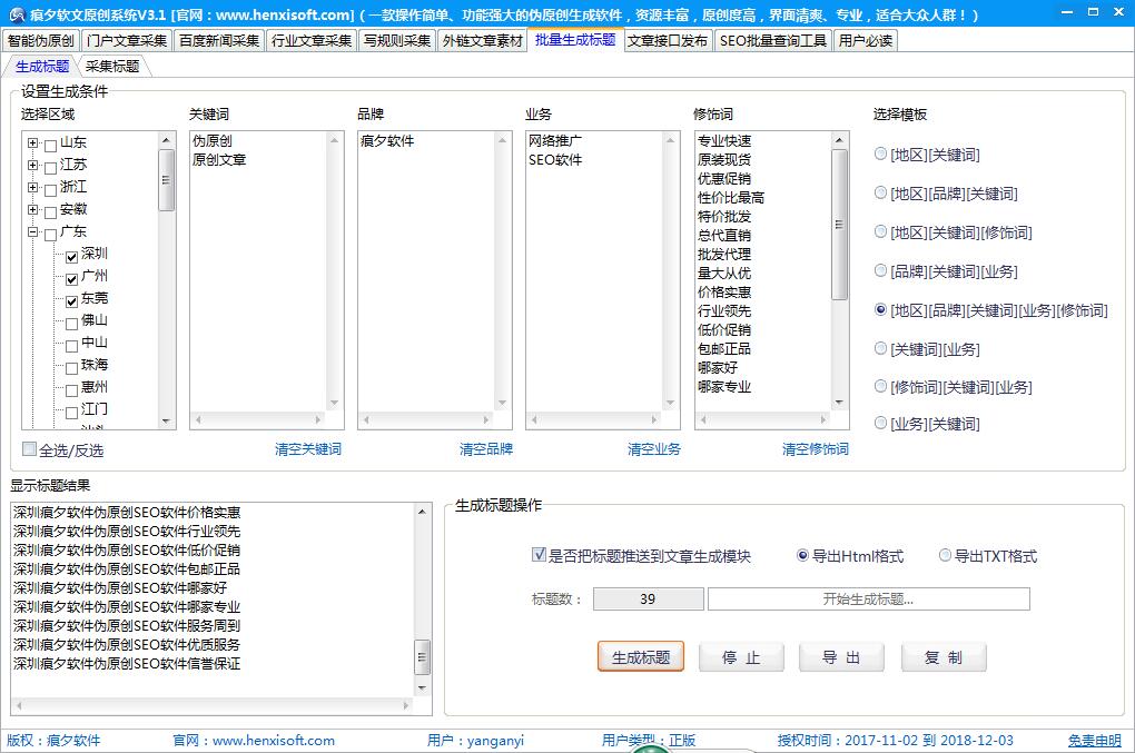 相关功能:删除已发内容、下载远程图片、织梦生成html静态文件、过滤重复标题的文章、生成标题图片、标题原创度优化、文章原创度优化、插入自定义标题、插入自定义图片、删除替换内容、插入关键词等等。