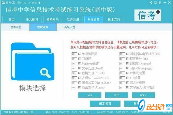 适用于高中学业水平考试、会考、高考等信息技术考试。根据考生的必修科目和选修科目,可自由勾选科目进行组卷,定制自己的专属模拟考试练习系统。