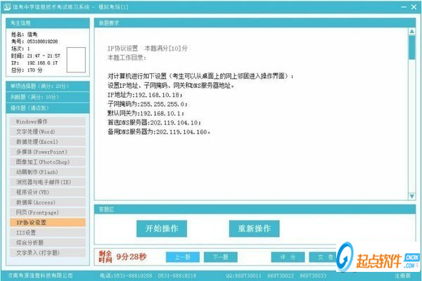 本信息技术考试练习系统由济南考源信息科技有限公司根据普通中学信息技术考试大纲要求而设计研发,并且自主研发了真实环境下的“手把手教+操作演示”,可使考生快速掌握考点知识,提前熟悉考试环境。信息技术考试操作题是真实上机考试,真实操作系统,系统自动评分的。软件里的模拟考场是模拟真实考试环境,可以帮助考生提前适应真实机考,轻松应考。软件注册码是25位纯数字,请注意辨别!