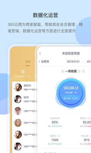 3、数据化运营:365云商为商家赋能,帮助其在会员管理、精准营销、数据化运营等方面进行全面提升。