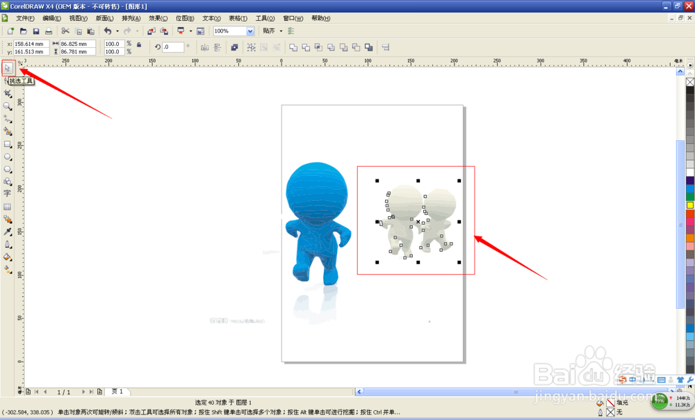 使用工具栏中的挑选工具选中我们不需要的图形,然后点击Delete键删除;