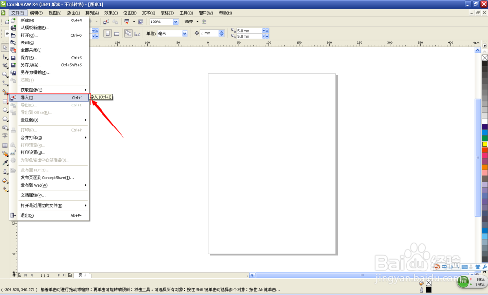 CorelDRAW X4怎么抠图?执行:文件——导入,选择需要制作的图片在CDR中打开(cdr导入图片的时候需要在界面中按住鼠标左键的同时托拖动鼠标,设置图片的大小);