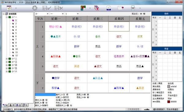 支持全周7天早中晚排课;支持同堂分科课、单双周课、多师联教课、多班合上课等设置;支持学科排课的分布统计;数据初始化阶段,教师、教室、学科名录等均可从TXT文本文件读入,省事高效...