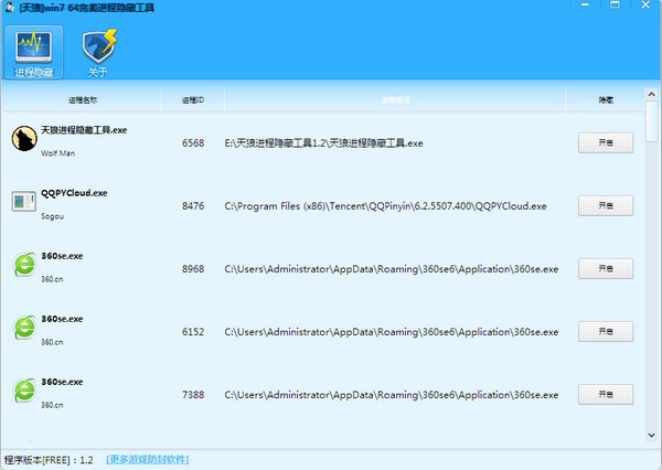 (ps:本软件没有任何外挂功能,仅仅是隐藏进程等功能)