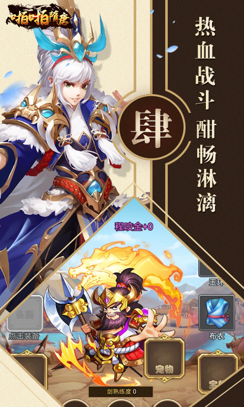 《啪啪隋唐bt版》将带你梦回隋唐,展现一个新颖别致,多彩纷呈的隋唐世界。玩家可以自由招募众多历史名将、神话英雄。还可以通过各种特色的阵法排布,打败邪恶势力,挑战终极Boss,抢占排行榜,赢取大豪礼!让你享受手动操作的乐趣,还能成为啪啪神器中的一代侠圣!