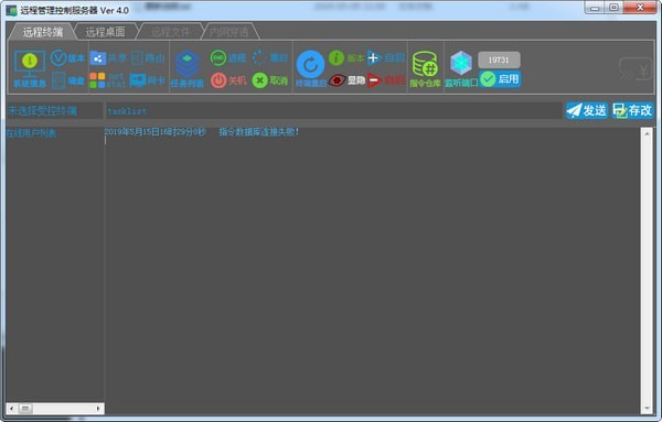 显示用户界面之后,也可以在用户界面修改服务器IP和端口。如果客户端已连接服务器,可以通过服务器上的“显隐”按钮来切换远程终端的隐藏和显示状态。