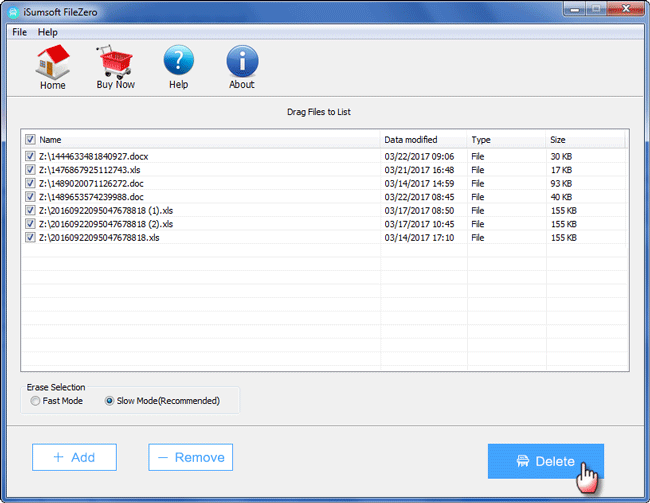 提示2:单击“删除”按钮之前,可以在“擦除选择”下选择“快速模式”或“慢速模式”。我们建议您选择慢速模式,因为删除的数据将在慢速模式下被更彻底地切碎,从而永远无法恢复。