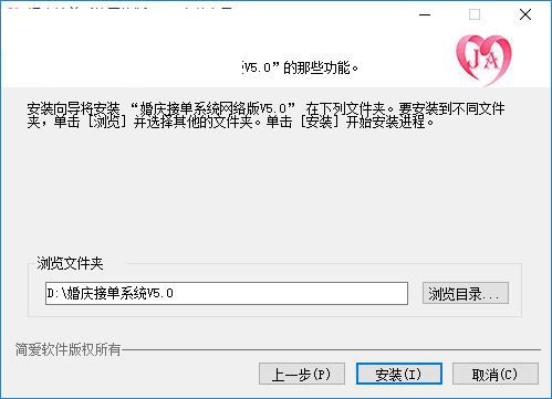 3、设置软件的安装地址,可以 默认D:婚庆接单系统V5.0