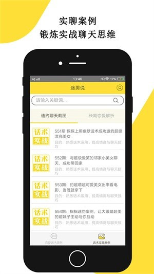 6、迷男说app提供各种实聊案例,锻炼你的聊天思维,成为个有趣的人。