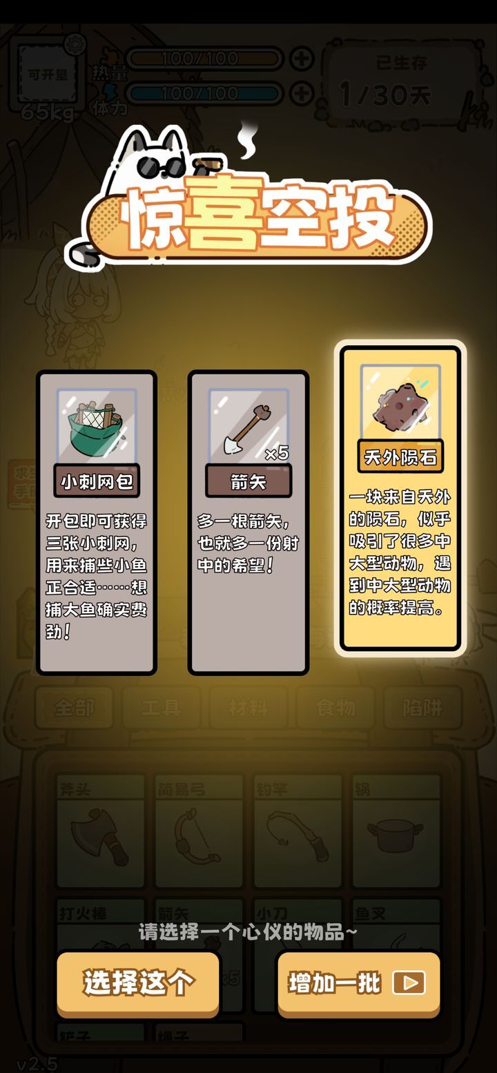 7后续的两次空投机会,建议优先考虑那些获取难度较高的物资,比如有个极难刷到的调味酱料,一旦出现务必选择;还有能提升运气的药水、适合寒冷环境的保暖衣物、用于捕猎的专用工具、装载武器的配件,以及那个带有动物元素的装饰物件,这些都值得优先选取。