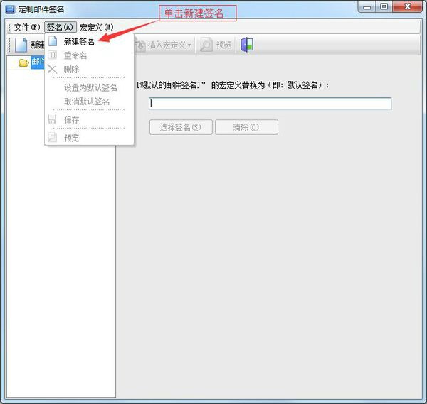 2.单击【签名】,选择下拉选项中的【新建签名】