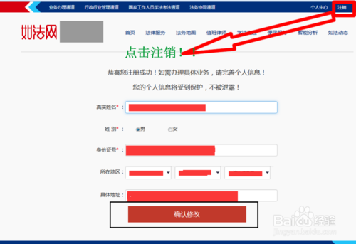 注册成功!完善个人信息,点击确认修改按钮!然后点击右上角的注销链接,注销账户:
