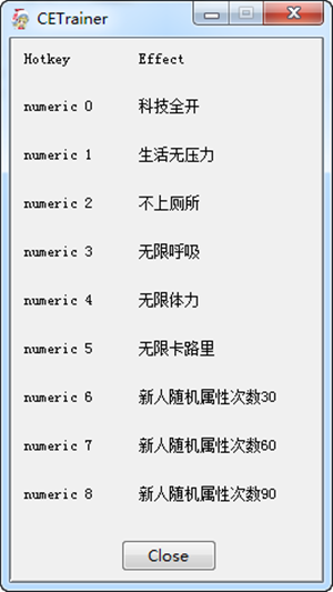 6,7,8同时只有一个生效,区别是属性点数值不同。小键盘0-8运行,如果有效显示为红色。