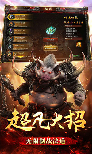 上线福利:登录送VIP5,登录送38888元宝,500万金币,首充满V。首充福利:首充任意金额十倍返元宝(机会只有一次) 送满vip(vip15) 并开通boss之家,刷boss无限制 更有无级别装备,助你称霸全服!