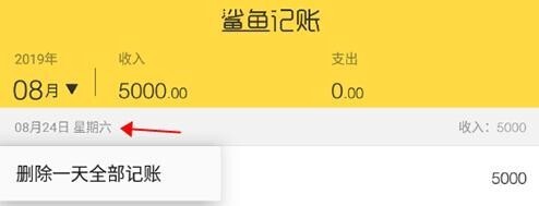 4若想对软件内的记账数据进行操作,可先打开软件,在明细页面找到需处理的日期并长按,此时会出现删除该日所有记账记录的选项,点击该选项即可完成当天记账数据的清除。