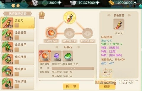 每件装备都能挑选两种宝石里的任意一种来镶嵌,镶嵌的等级越高,所提升的属性也就越丰厚。角色完成首次转生后,会额外解锁灵品宝石孔,这样就能给装备镶嵌更多宝石,让角色的战斗力实现飞跃式增长。