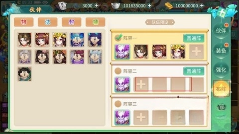 在战斗中取得胜利,合理的阵容排布是关键。第一步需要点击界面右下角的伙伴选项,从而进入到阵容设置的页面。