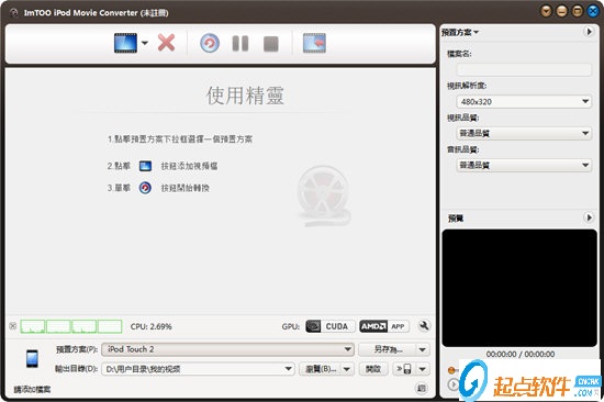最大转换速度最大转换速度:支持多核CPU–在转换iPod视频/电影时充分利用多核系统。