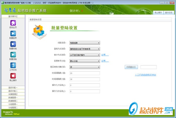 多线路支持,批量登陆,批量发贴,批量回贴,智能抢楼,智能抢楼中楼,超级盖楼,贴子监控,批量关注,批量签到,批量上传头像,批量发私信,批量转贴,各种换IP方式,可以发送链接,本地图片,网络图片,视频,音频,大召唤,支持各种随机标签,更有强大的自定义内容标签!数据循环自由控制!