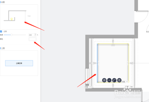 然后点击中间的线条,出现剖面灯带命令,在这里可以更改灯带的亮度和颜色,我们点击剖面造型图案,将出现编辑命令