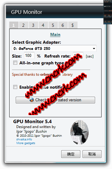 gpu monitor V8.1 英文绿色版 gpu monitor电脑监视软件是一个显卡监视桌面小工具.
