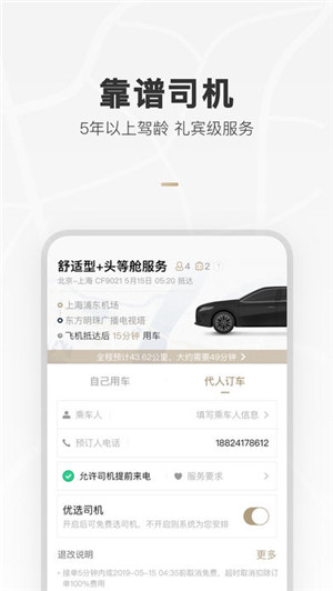 预订专车同步提供航班、高铁行程服务。