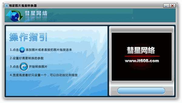彗星图片批量转换器是一款免费的图片转换器。该软件支持批量转换图片格式、批量修改图片尺寸,还可以添加文字水印、图片水印。是网站管理人员、网店店长必备工具。