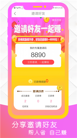 1、省:大额优惠券,每日更新大额优惠券,领券购物更省钱!全部免费领取,简单方便直接抵现金。2、赚:不仅省还能赚,分享能赚钱,邀请好友也能赚钱!