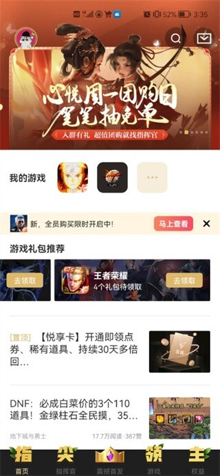 1. 第一步,打开心悦俱乐部,在首页顶端能瞧见会员版块,点击里面的“绑定游戏领礼包”。