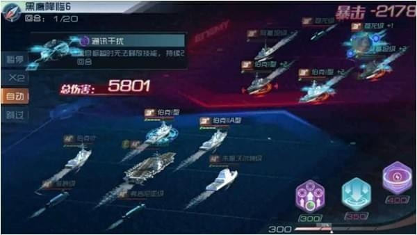 【电磁干扰战术】对多目标进行打击,全体伤害,战场中敌方单位较多时有优势。能给敌方施加【通信干扰】效果,阻止敌方释放技能。给己方施加【防护大师】增益,提升防御力。主要由美国战舰组合的战术舰队搭配。