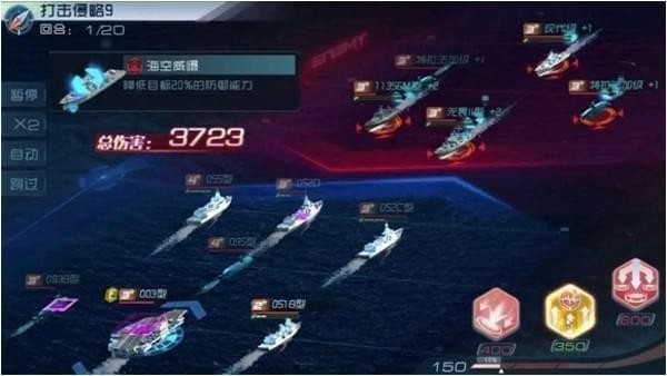 对同一目标进行多次打击,单体秒杀,当敌方目标较少时有优势。能给敌方施加【海空威慑】效果,使其防御力下降。给己方施加【士气如虹】增益,提升攻击力。主要由中国战舰组合的战术舰队搭配。