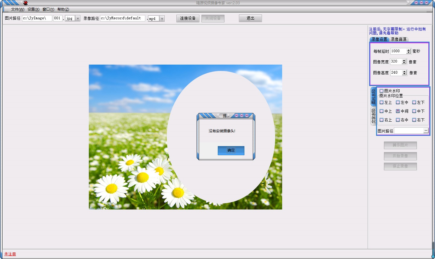 1、对摄像头捕捉到的视频,进行录像、捕捉单幅图片。2、图片支持jpg/bmp格式,录像支持mp4/avi/flv/swf格式,录音支持mp3/wav。