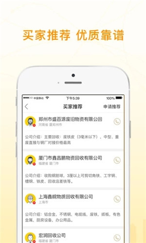 1、结交规模更大的回收商人群,帮助你更直接的达成交易。2、找到自己的同类,报团取暖,成为彼此终身陪伴的挚友。