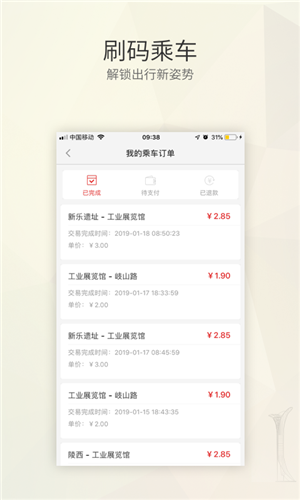 3. 公共交通(地铁、公交部分线路)扫码乘车,让出行更方便快捷。